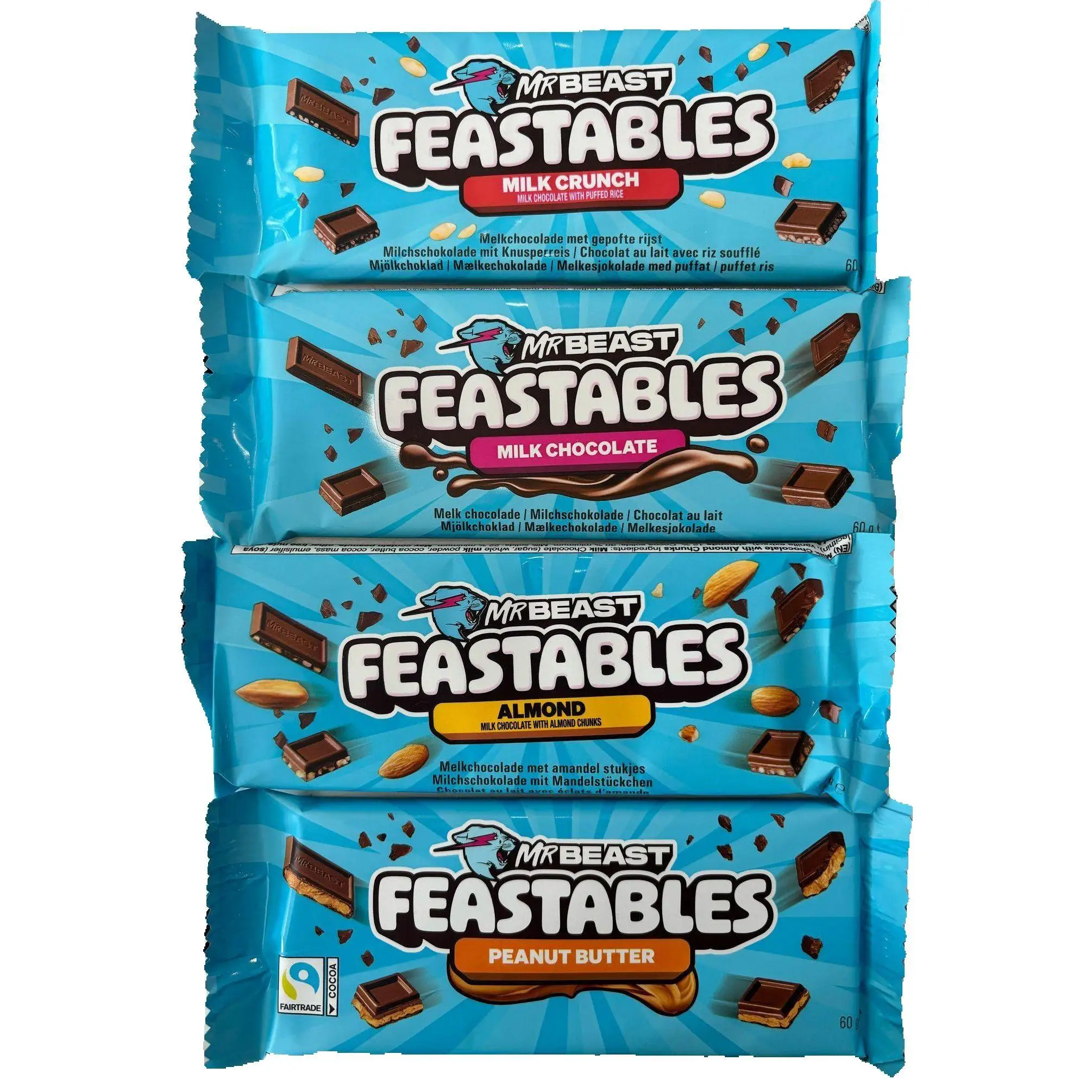 Combo 4 Pack Mr Beast Feastables Chocolate - Sabores USA 🍫