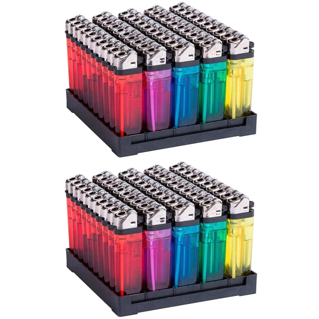 🌈 Pack de 50 mecheros desechables en colores transparentes.