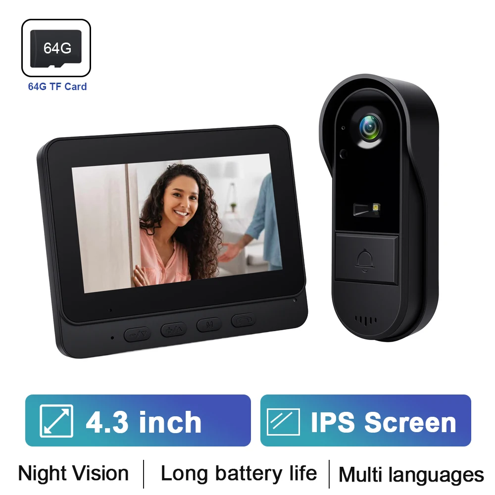 Timbre Podofo inalámbrico 4.3" IPS HD, intercomunicador 2.4G 🚪🌜